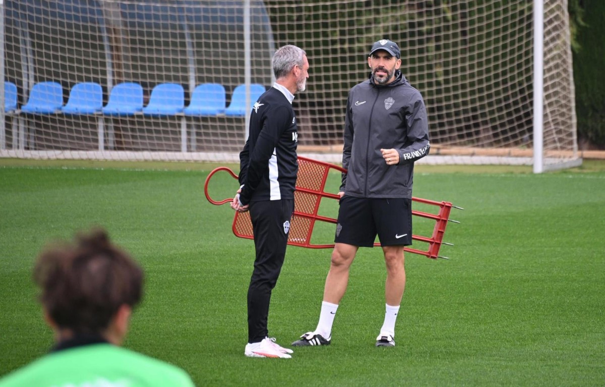 El Elche CF no baja el pistón. El conjunto franjiverde se ha ejercitado este martes en el campo Diez Iborra con la mirada puesta exclusivamente en el Estadio de Vallecas. Los pupilos de Éder Sarabia afrontan la jornada 30 de LaLiga con la vitola de "final" anticipada, y lo hacen con una de cal y otra de arena en el parte de bajas.