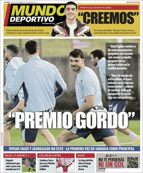 Un día más, os traemos las portadas de los principales periódicos deportivos de España, en su edición de hoy, 19-02-2026